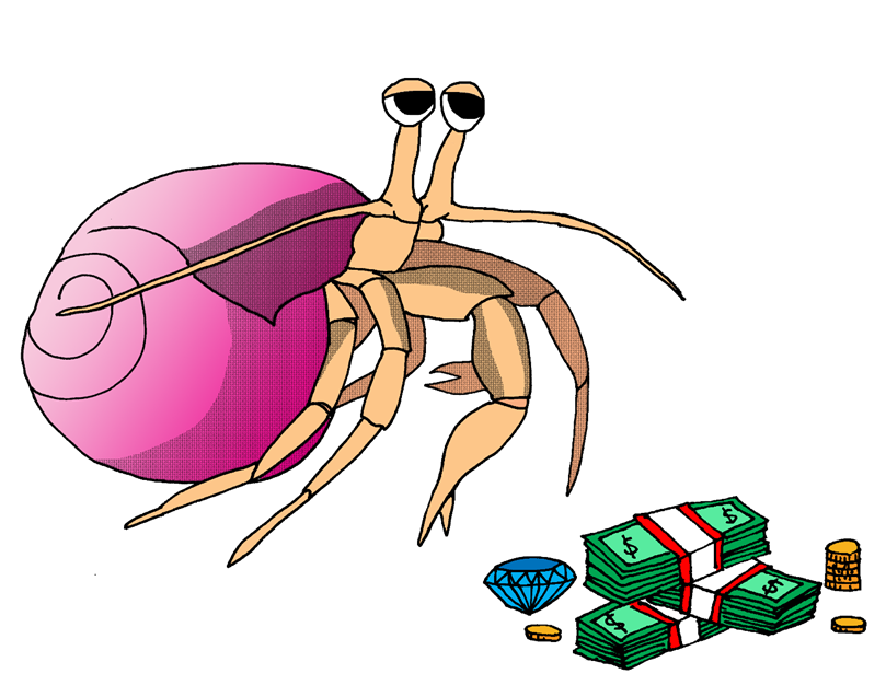 Jim: I’ve got to stop you there. With all due respect, how can hermit crabs have wealth transfer? Correct me if I’m wrong, but I don’t believe that hermit crabs make sure that when they die, their children get their now-vacant shells, or that a living hermit crab – one with a death wish –gives its shell to its children or other relatives. I don’t believe that they live in family groups, so shell transfer couldn’t even happen by chance, much less intention.